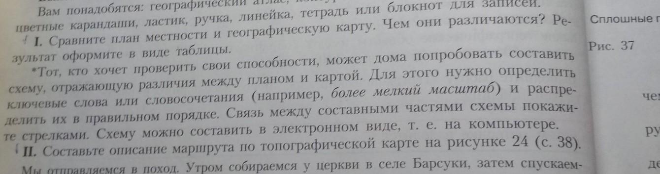 Географическая карта: вверху. Условные знаки.