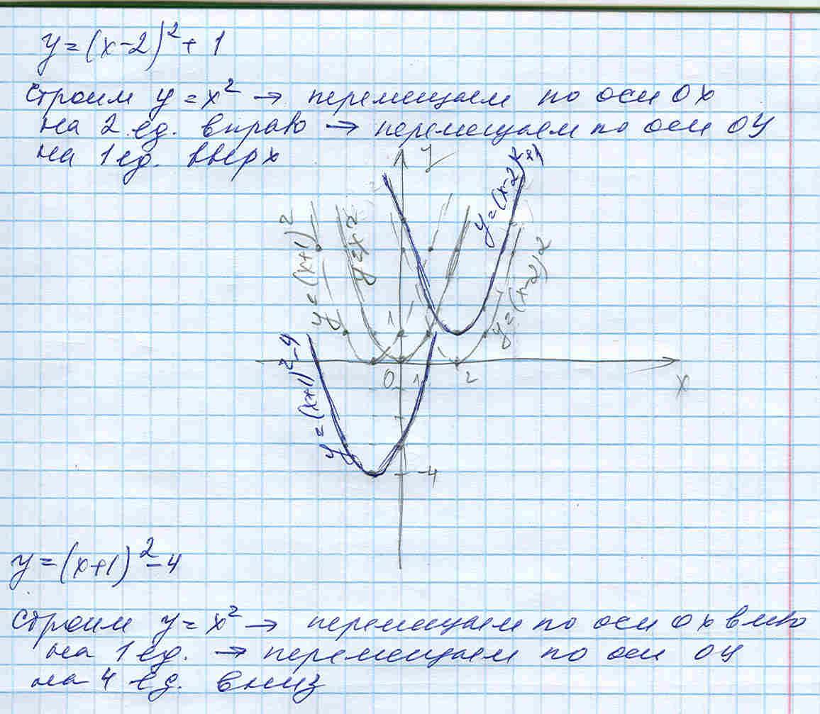 построить в одной системе координат путем перемещения графики функций y=(x-2)^2+1, y=(x+1)^2-4