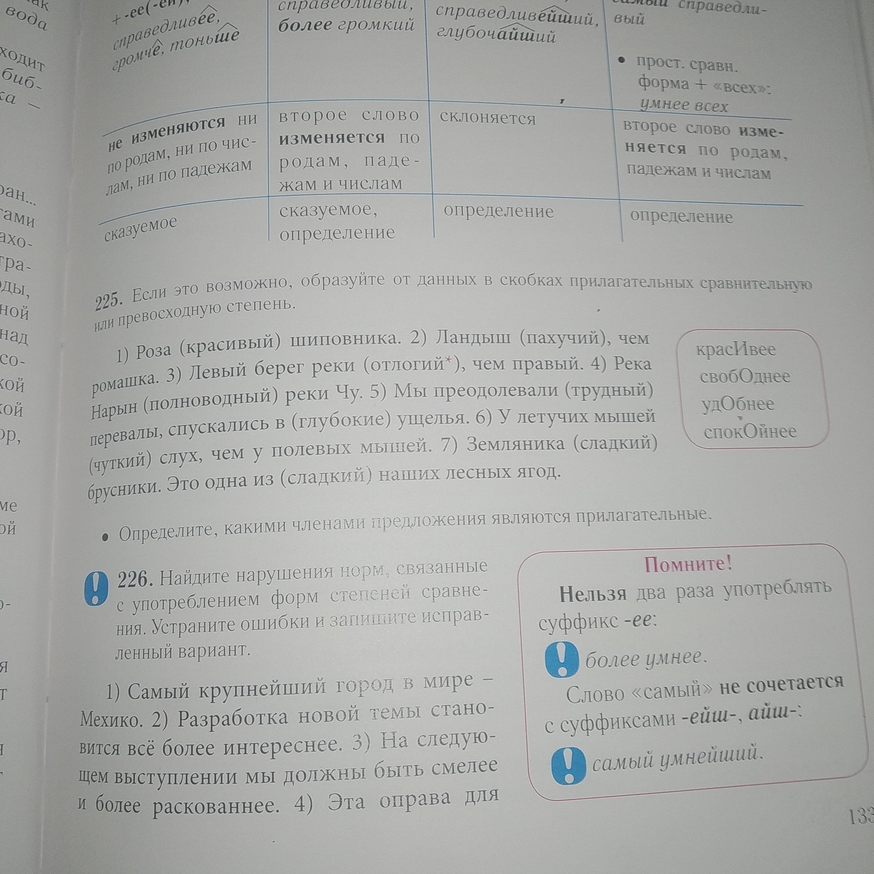 Ответ:1) красивее 2) пахучее 3) более отлогий 4) полноводнее 5) труднейшие, глубочайшие 6) более чуткий 7) слаще, наиболее сладких