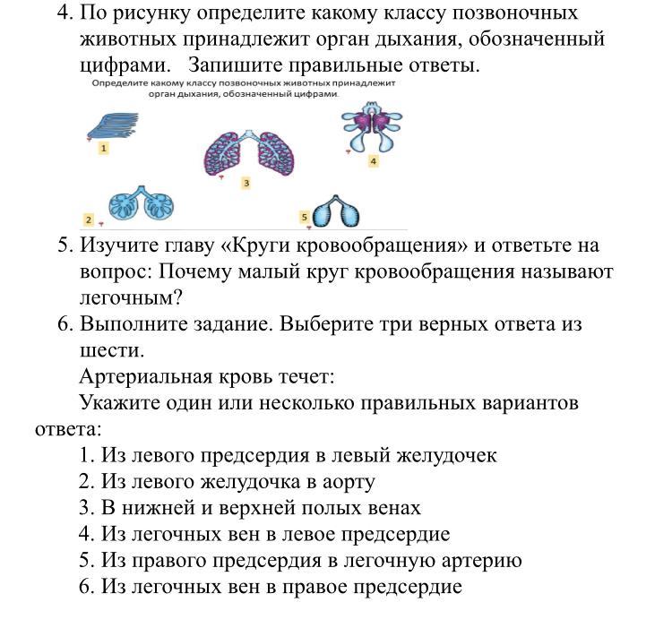 Ответ: 5. Поскольку венозная кровь из сердца движется в легкие там кровь превращается в артериальную и возвращается к сердцу.