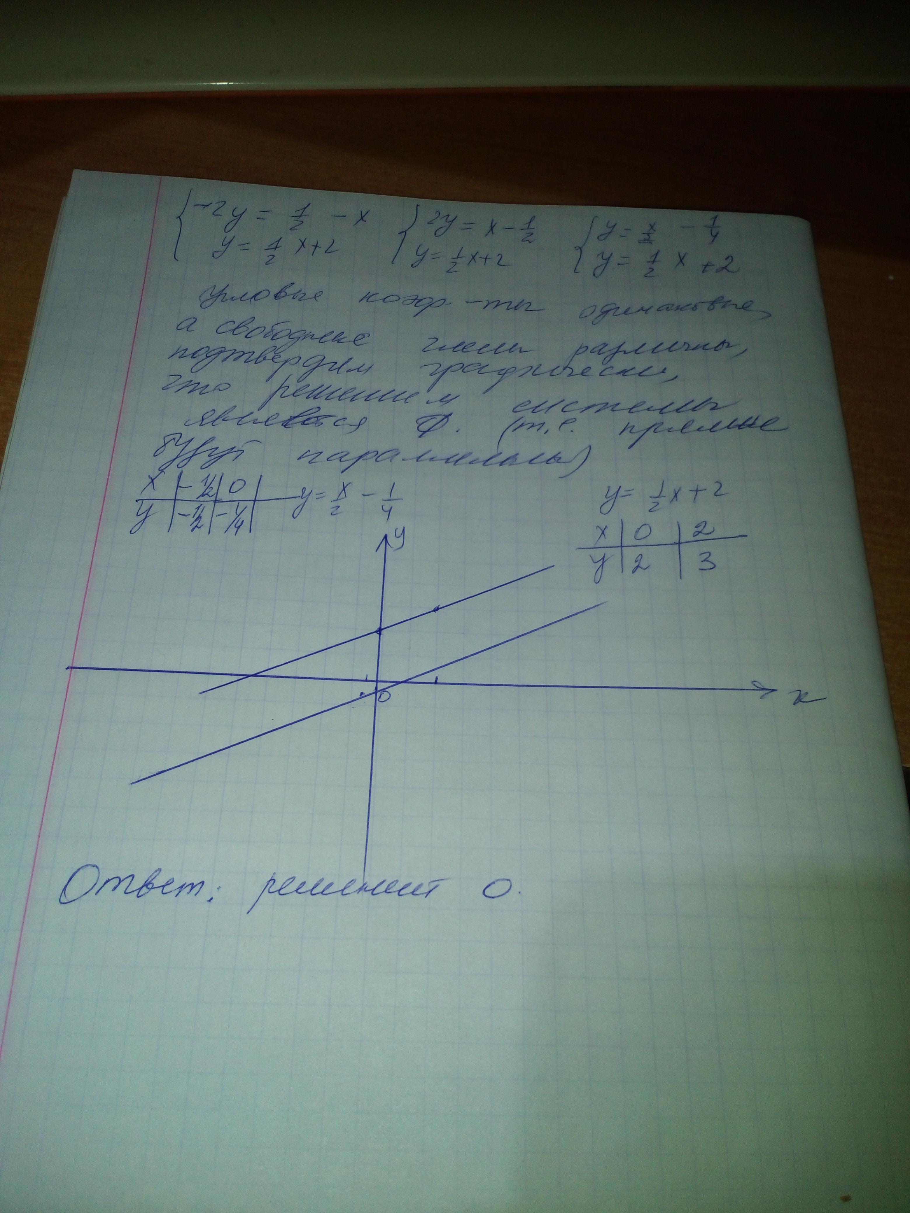 2) под рукой не было линейки, поэтому на рисунке у меня прямые не параллельны. НО на клетчатой бумаге и с линейкой прямые будут параллельными, потому что у них угловые коэффициенты одинаковые.