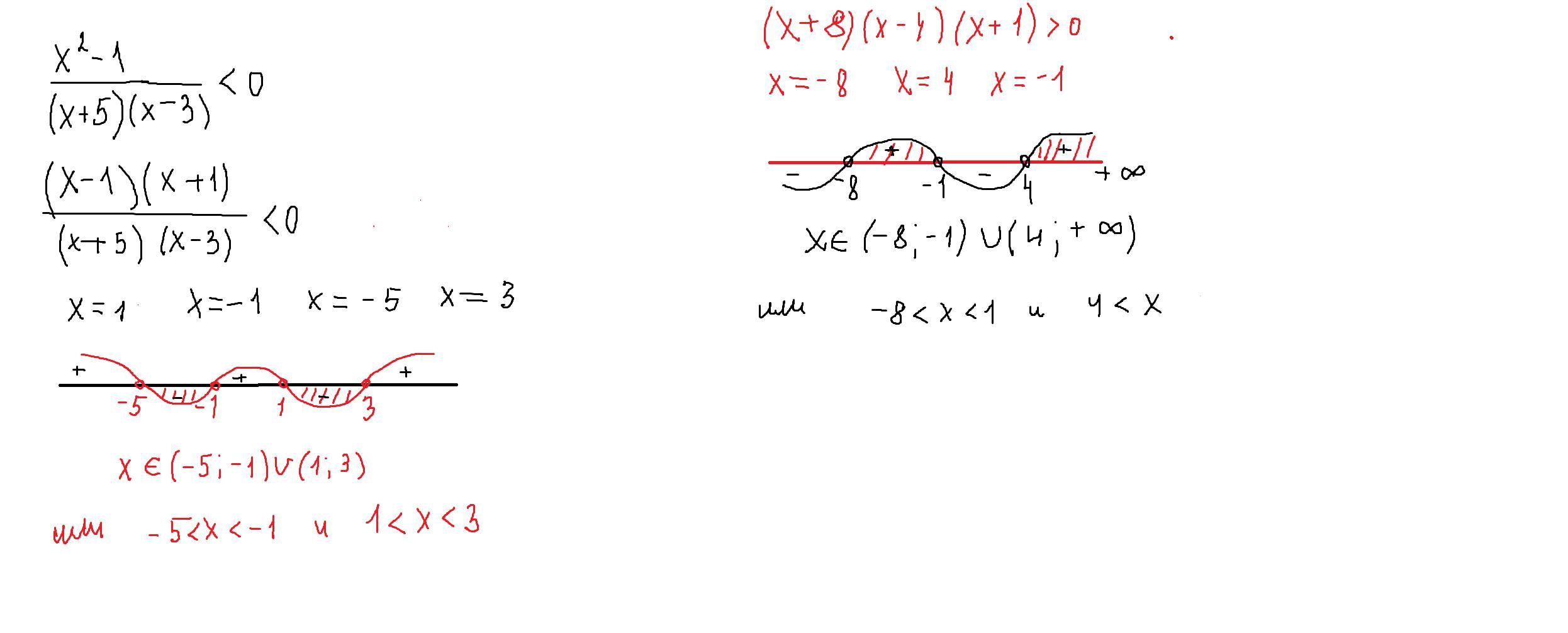 Так как меньше 0, то учитываются промежутки с минусом и без самих точек. Ответ: (-5;-1)∪(1;3)