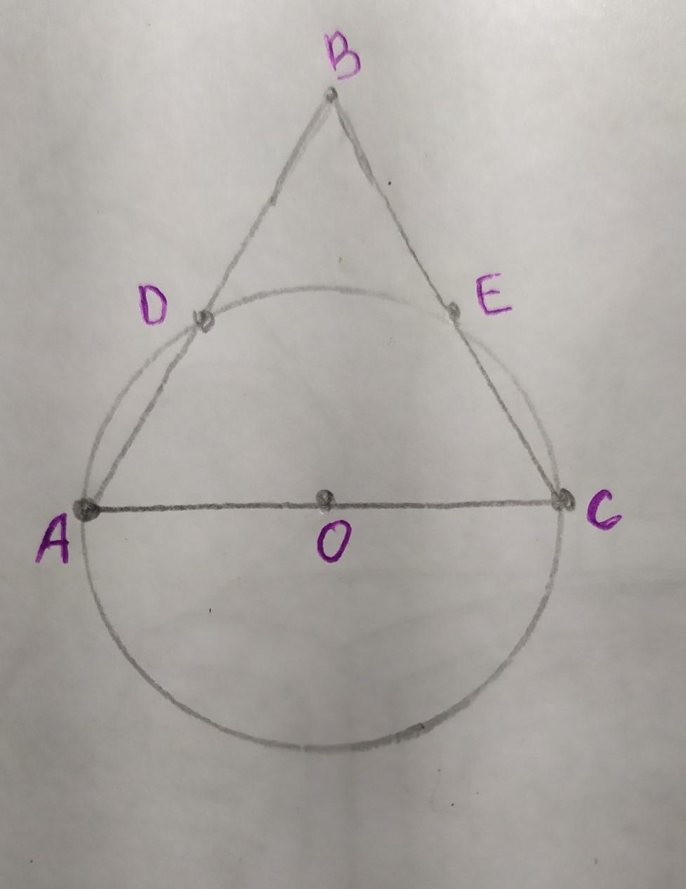 сторона равностороннего треугольника AC длиной 82 см является диаметром окружности. окружность пересекается с двумя другими сторонами в точке D и E определите длину DE
