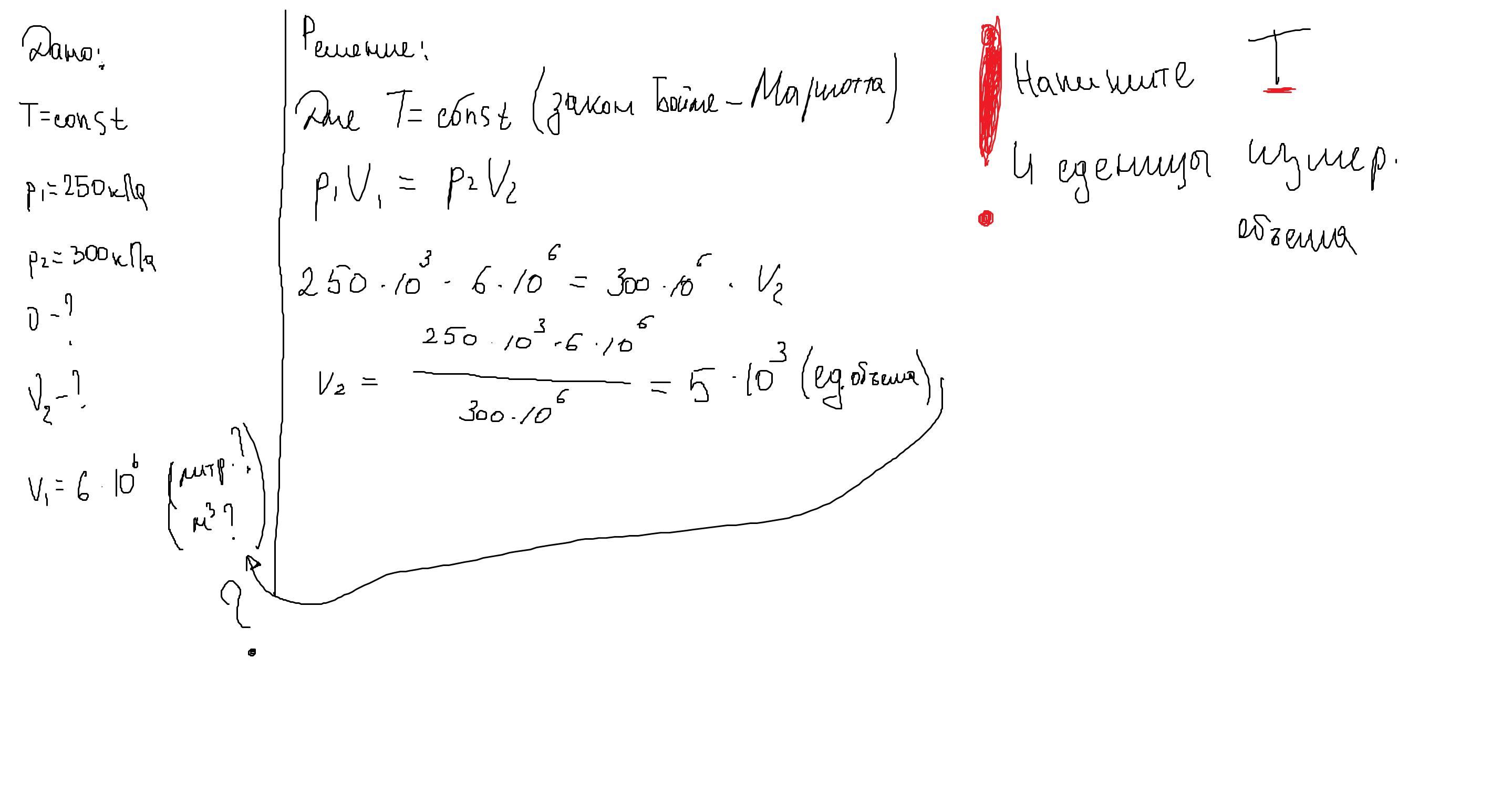 Давление газа увеличилось изотермически от 250 кПа до 300 кПа. Найдите количество и объём газа, если начальный объем 6*10 в 6 степени