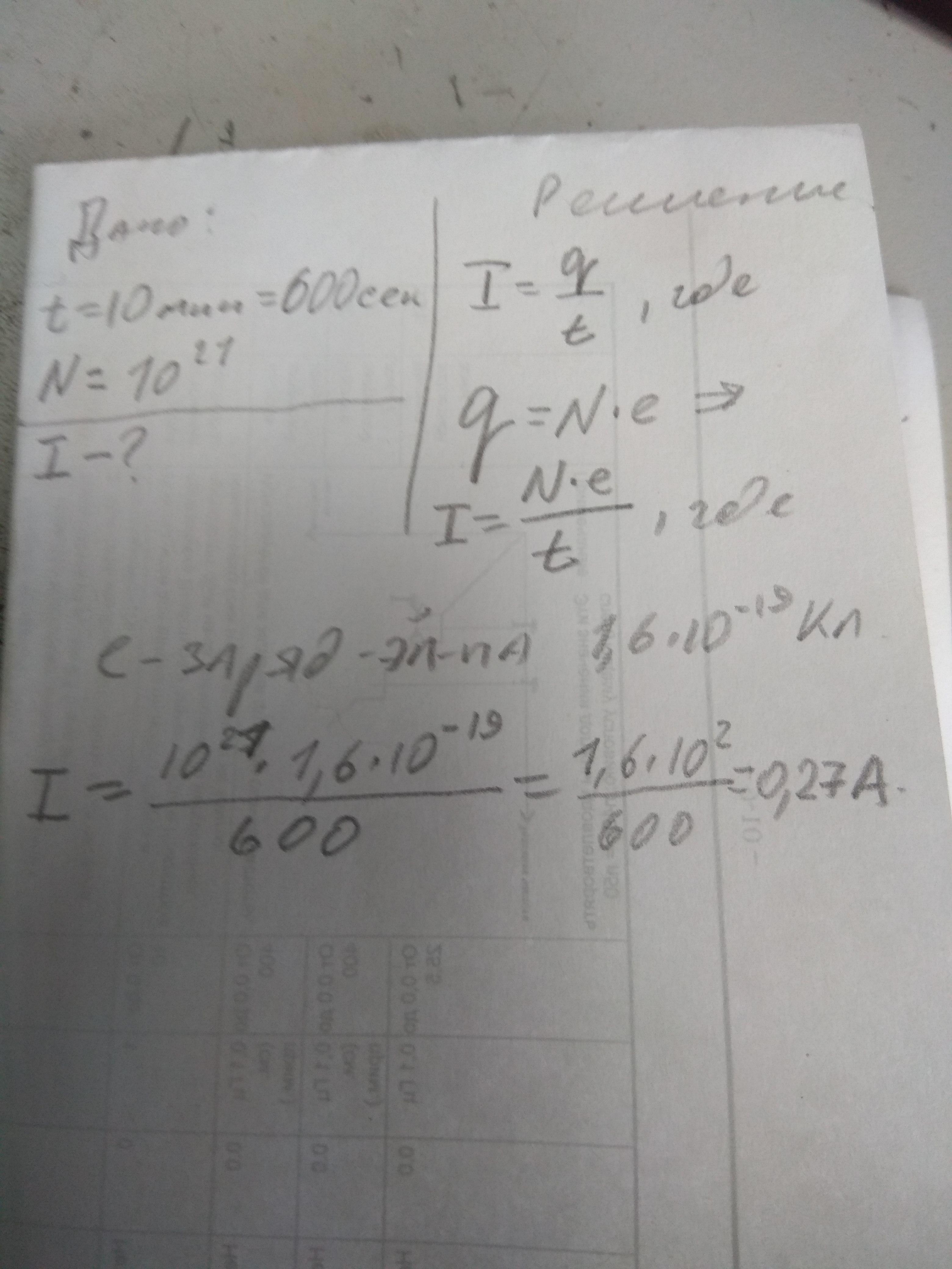 За 10 минут по проводнику прошло 10²¹ электронов. Какой силы ток течет по этому проводнику?