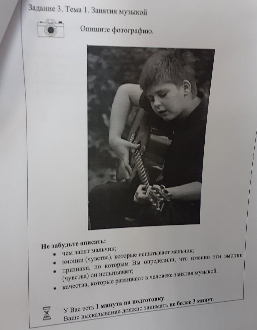 3.Он держит в руках гитару,он смотрит на струны,его лицо очень настроенное к инструменту.