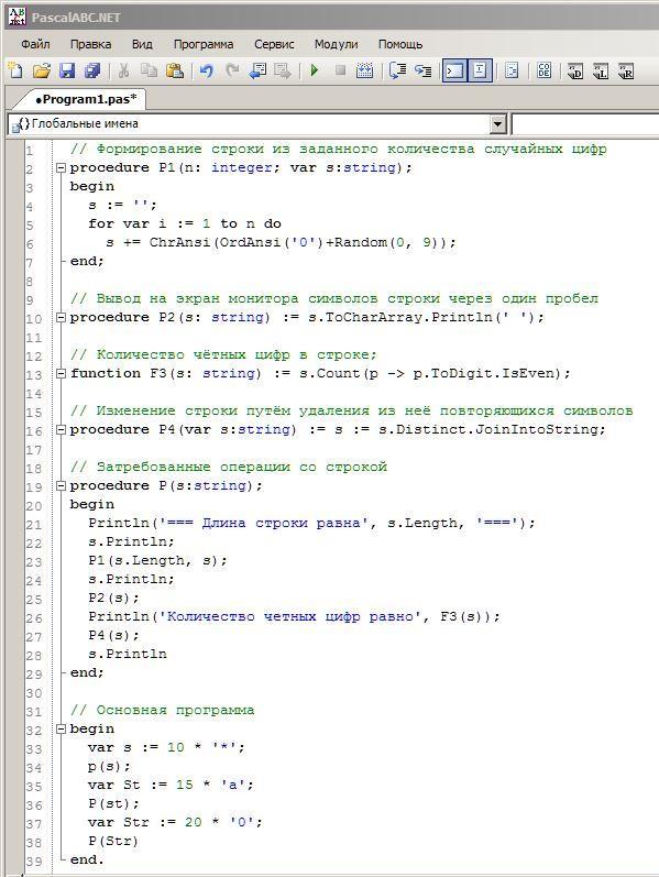 Применить все вышеперечисленные подпрограммы для строк S(10), St(15), Str(20).