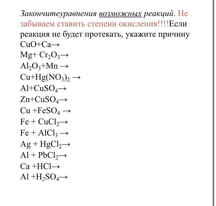 8.Fe+AlCl3 Ø. Эта реакция в нормальных условиях не происходит, потому что Al является более реакционноспособным чем Fe.