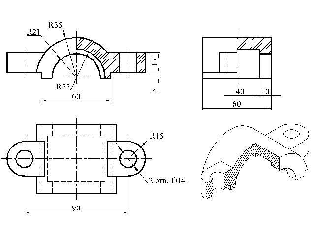 Построить изометрия детали, на изометрия вырезать выделенную четверть квадрата (желательно нижний).