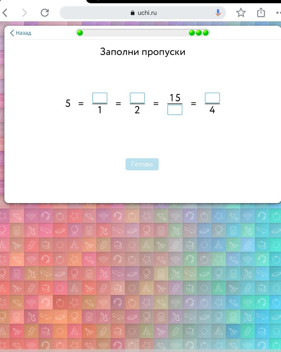1) 5:1=5 2) 10:2=5 3)15:3=5 4)20:4=5