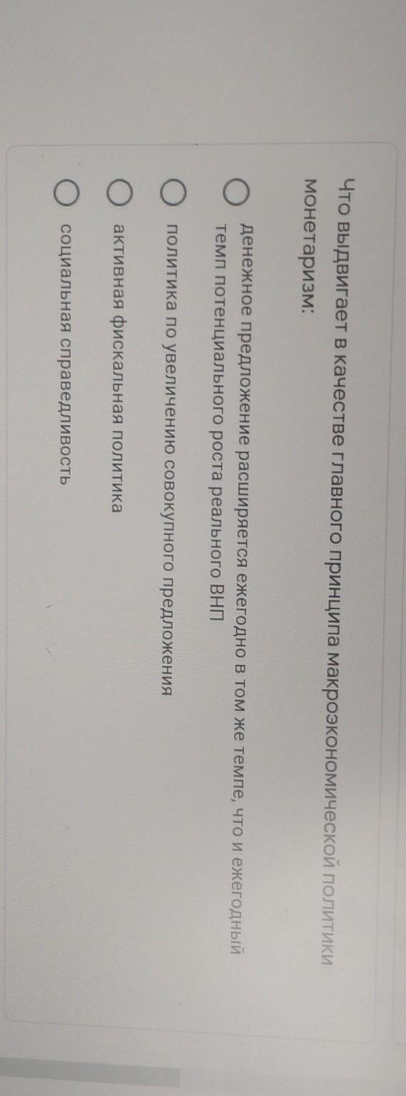 В качестве главного принципа макроэкономической политики монетаризм выдвигает: денежное предложение расширяется ежегодно в том же темпе, что и ежегодный темп потенциального роста реального ВНП.