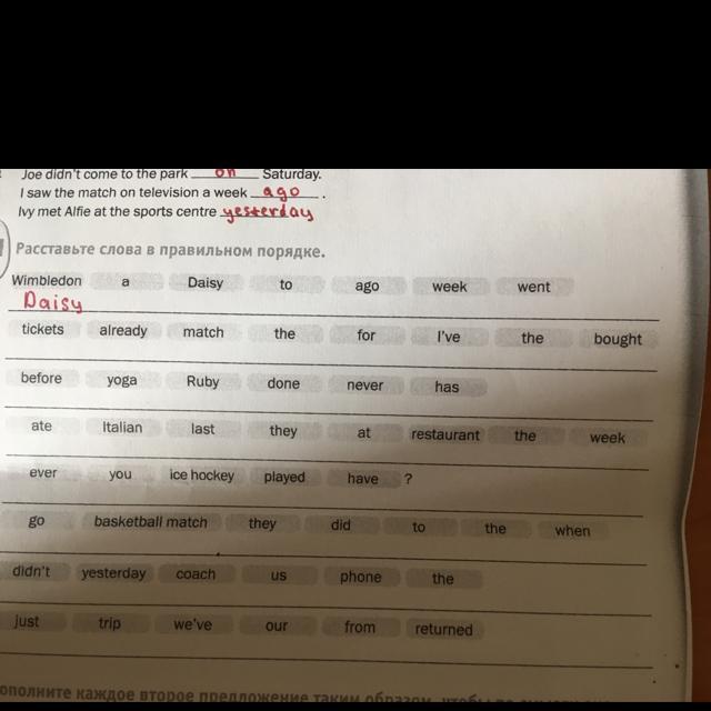 1. Daisy went to a Wibledon two weeks ago