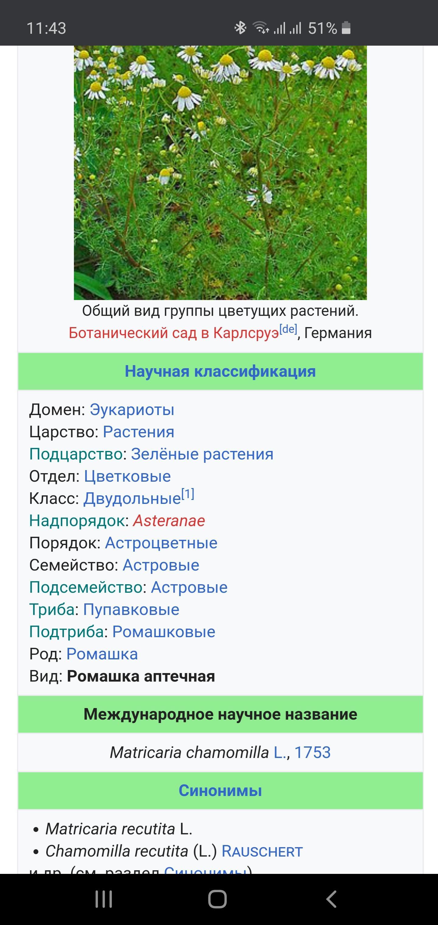 помогите пожалуйста решить срочно!!! вид: ромашка аптечная, нужно найти её род, семейство, порядок класс, отдел, и царство