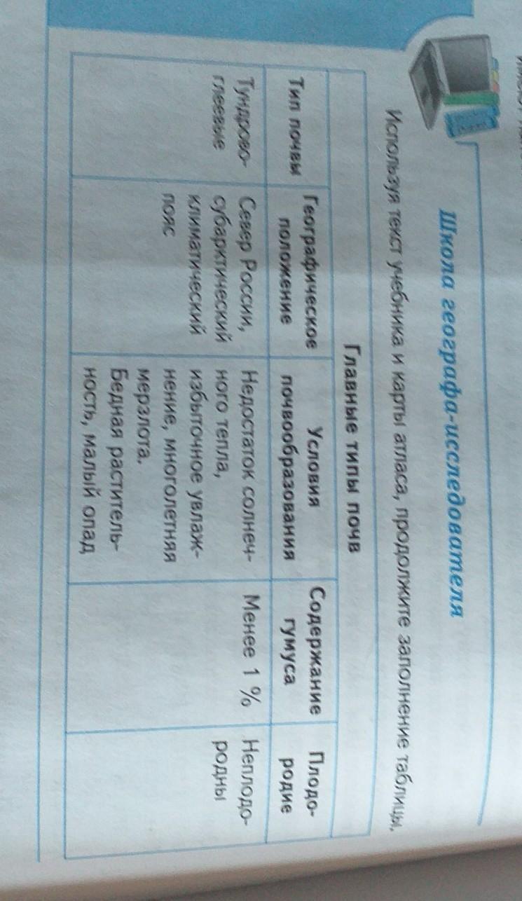 Арктические почвы получаются в результате оттаивания вечной мерзлоты. Такая почва довольно тонкая. Максимальный слой гумуса (плодородного слоя) составляет 1-2 см. У этого типа почв низкая кислая среда. Почва эта не восстанавливается из-за сурового климата. Эти почвы распространены на территории России только в Арктике (на ряде островов Северного Ледовитого океана). В силу сурового климата и маленького слоя гумуса, на таких почвах ничего не растет.