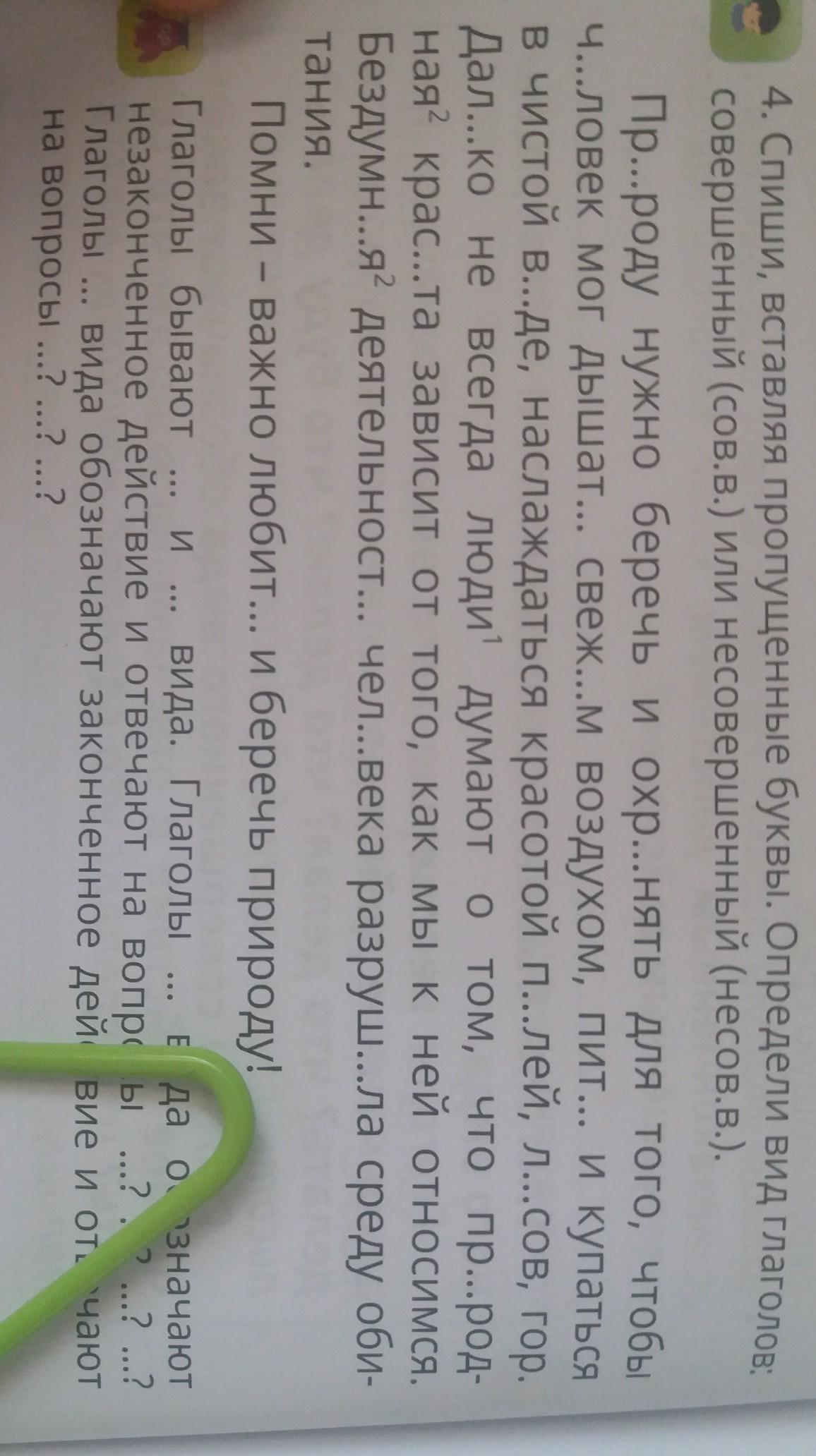 Спиши, вставляя пропущенные буквы. Определи вид глаголы ; совершенный (сов.в) или несовершенный (несов.в ).