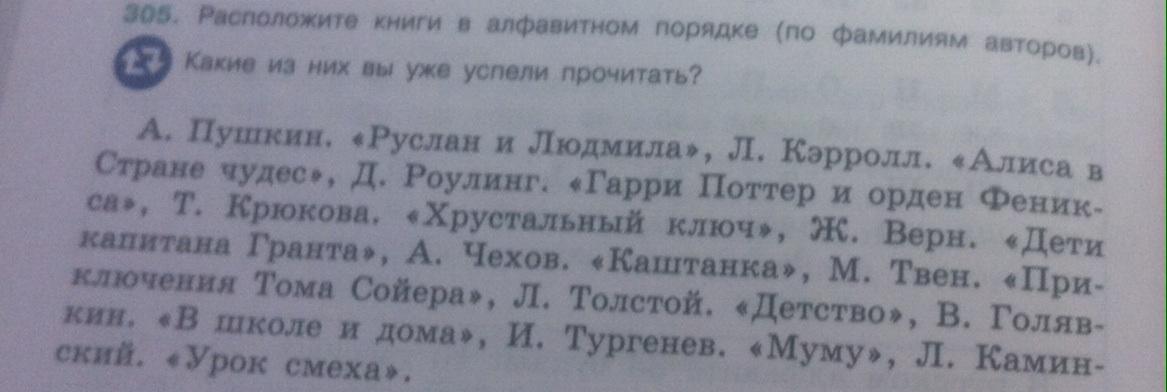 Ответ:Ж.Верн, В. Голявкин, Л. Каминский, Т. Крюкова, А. , Л. Кэрролл, А. Пушкин, Д. Роулинг, М. Твен, Л. Толстой, И. Тургенев, А. Чехов.