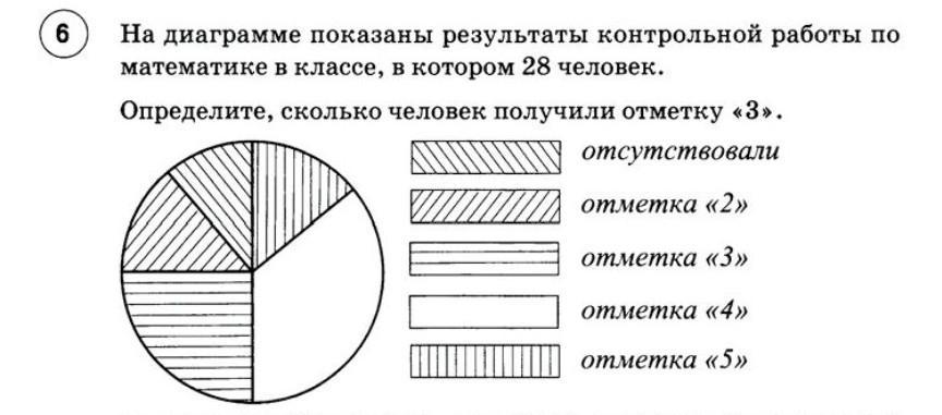 На диаграмме показаны результаты контрольной работы по математике в классе, в котором 28 человек.