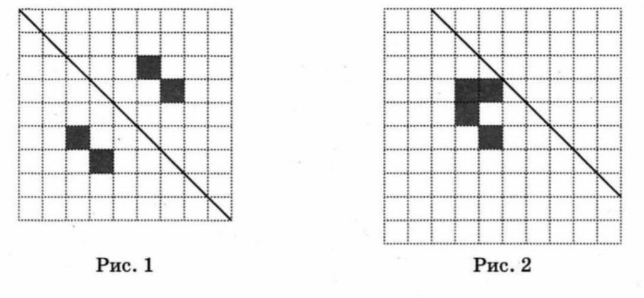 На рисунке 1 на клетчатой бумаге изображены фигуры, симметричные относительно прямой. Начертите на рисунке 2 фигуру, симметричную заштрихованной фигуре относительно прямой