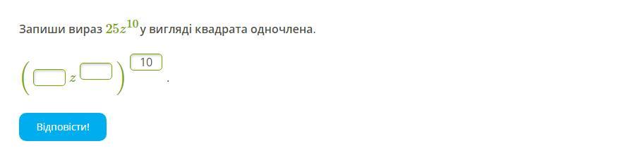 Запишите выражение 25z10 в виде квадрата одночлена.