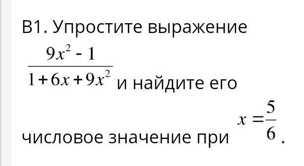 ((3х+1)(3х-1))/(3х+1)²= ((3х+1)(3х-1))/(3х+1)(3х+1)=(3х-1)/(3х+1)=(3*5/6-1)/(3*5/6+1)=