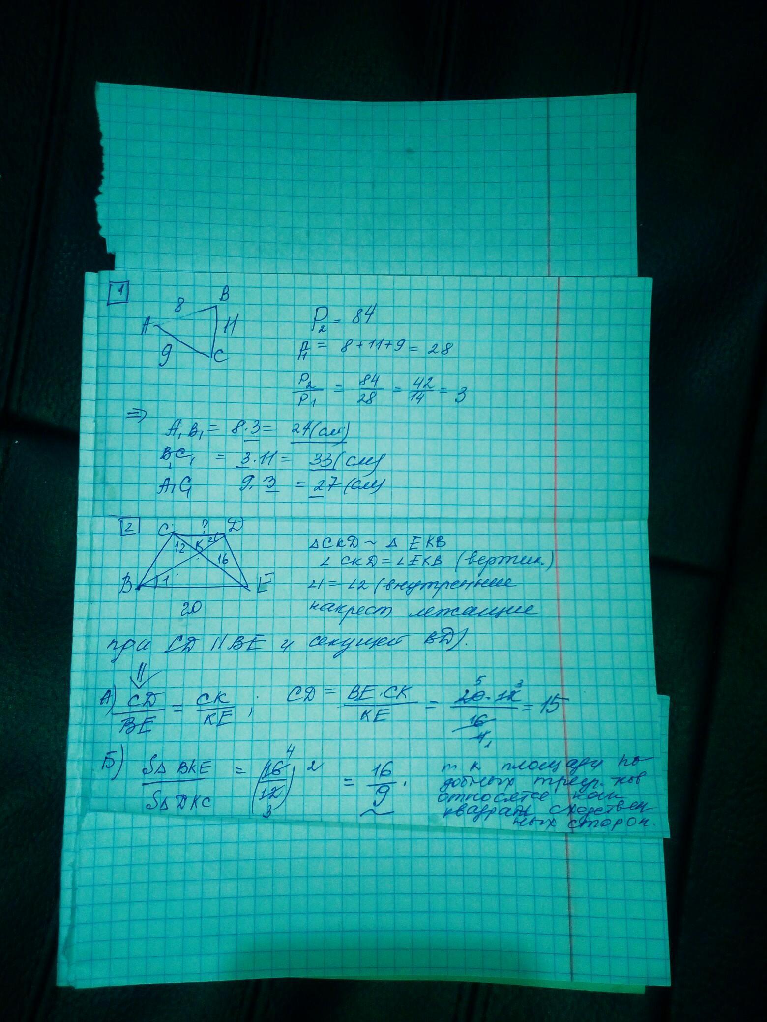 1.Стороны треугольника равны 8 см, 11 см и 9 см, а периметр подобного ему треугольника равен 84 см. Найдите стороны второго треугольника.