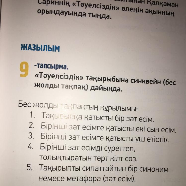 Короче надо синквейн на тему тауельзыздык(каз клавиатуры нету)