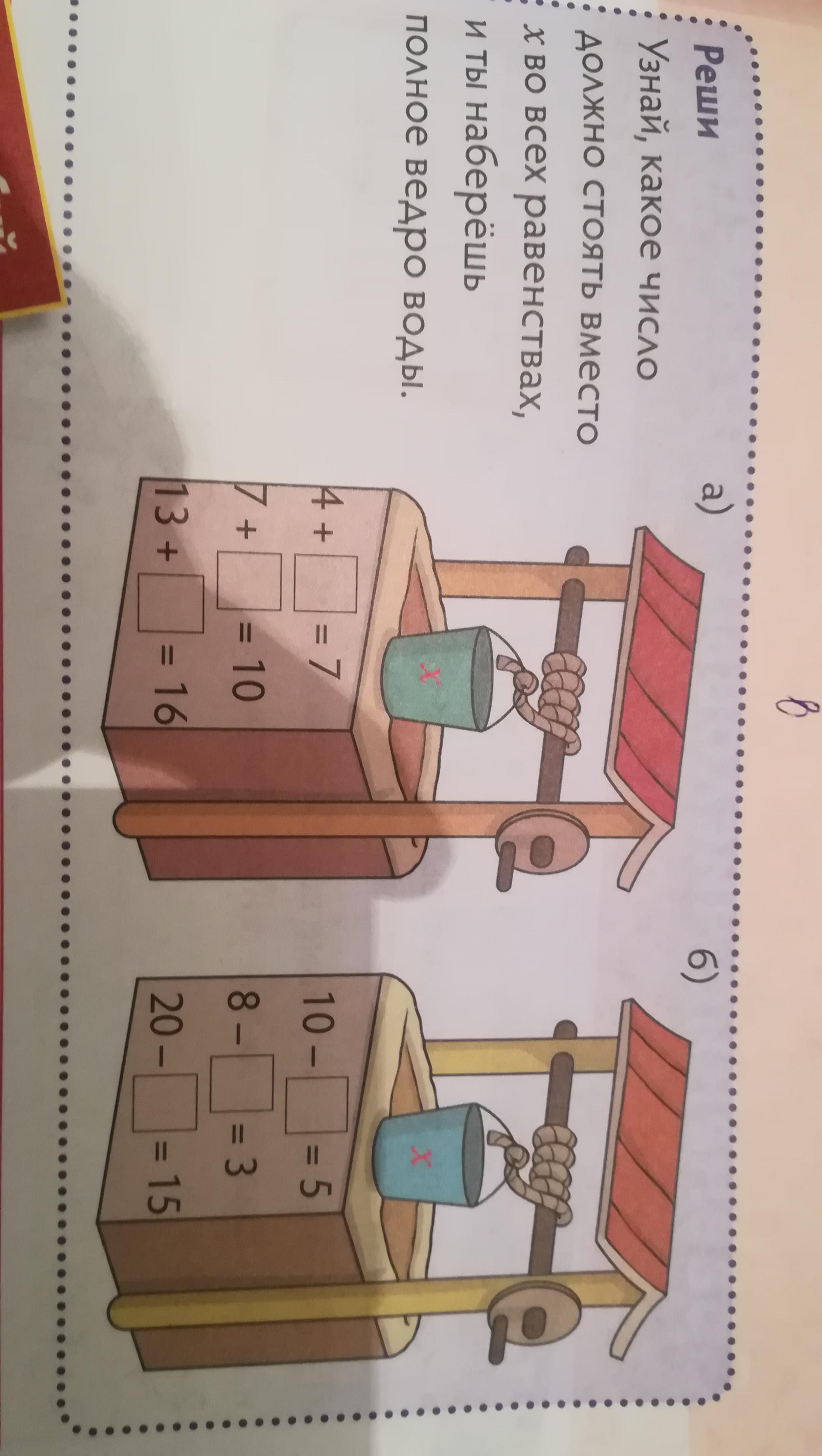 Узнай какое число должно стоять вместо х во всех равенствах и ты наберёшь полное ведро воды