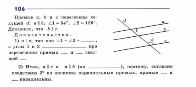 Итак:a||c и a||b по третьему свойству. Поэтому согласно следствию 2 из аксиомы параллельных прямых, прямые b и c параллельны.