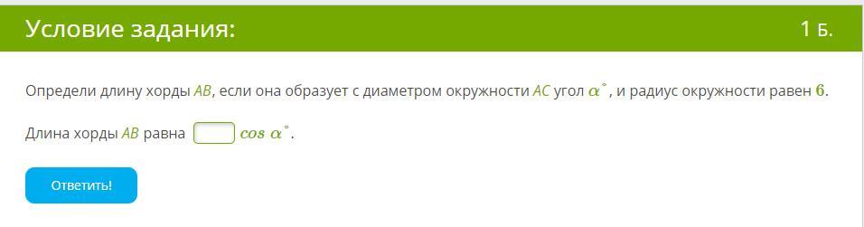 Угол ABC опирается на диаметр, значит он прямой. Если радиус 6, до диаметр (AC) 12. cos a = ab/12 => ab = 12cos a