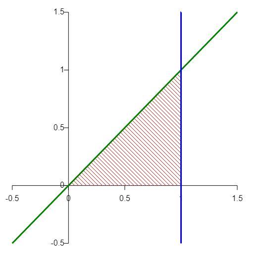 Область D ограничена линиями: y = 0; y = x; x = 1