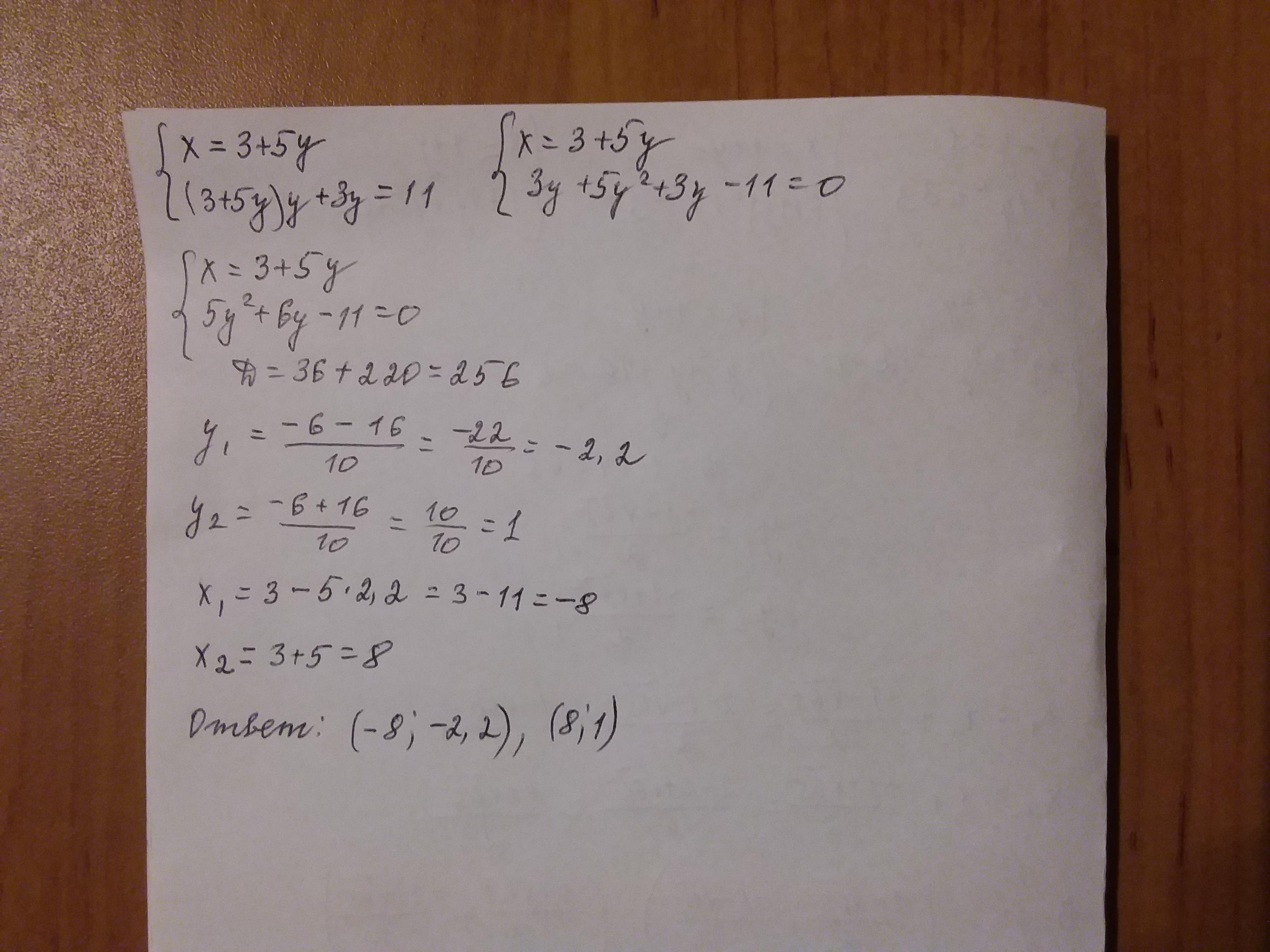 Х=3+5у. X1=3+5×5=28. X2=3+5×(-11)=-52