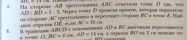 если не ошибаюсь то по рисунку выходит средняя линия треугольника. если так то DE=AC/2=8см