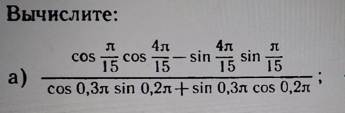 В числителе формула косинус суммы => cos(π/15+4π/15)=cos(π/3)