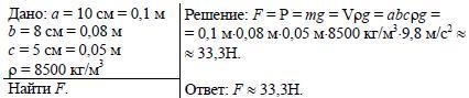 С какой силой растянута пружина, к которой подвесили брусок из латуни размером 10х 8х 5х (см)?