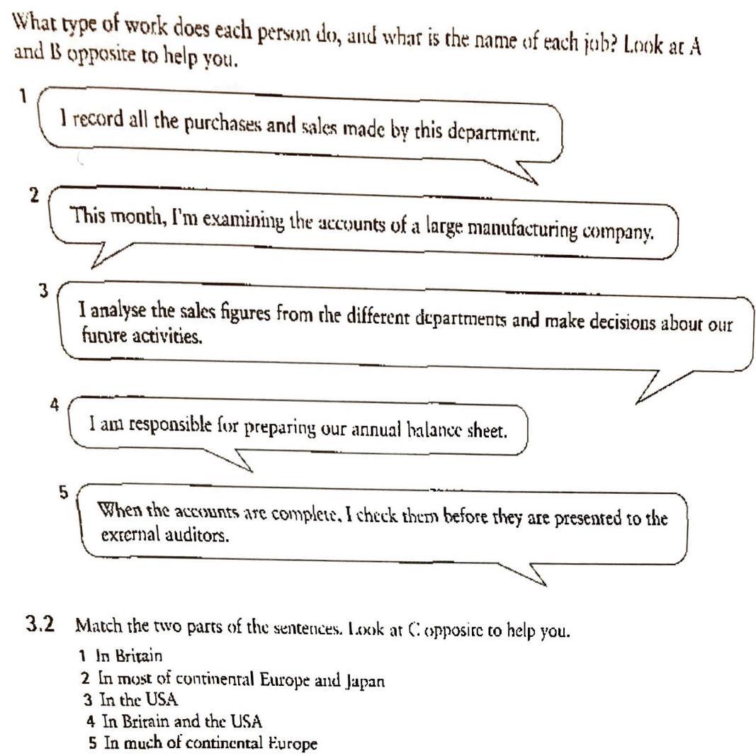 1 В Великобритании 2 В большинстве стран континентальной Европы и Японии 3 В США 4 В Брирейне и США 5 В большей части континентальной Европы бухгалтерский учет установлен государственным агентством. b компании в основном финансируются акционерами или акционерами. Правила бухгалтерского учета устанавливаются независимой организацией. d основным источником раздельного финансирования являются банки. Правила бухгалтерского учета устанавливаются правительством. 3 Найдите глаголы в противоположностях A, B и C, которые он может использовать для составления словосочетаний существительных ниже.