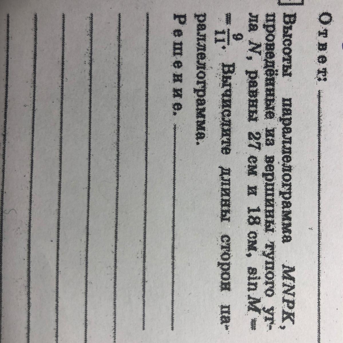 Т.к. MNPK - параллелограмм, то ∠M=∠P ⇒ sin∠M = sin∠P