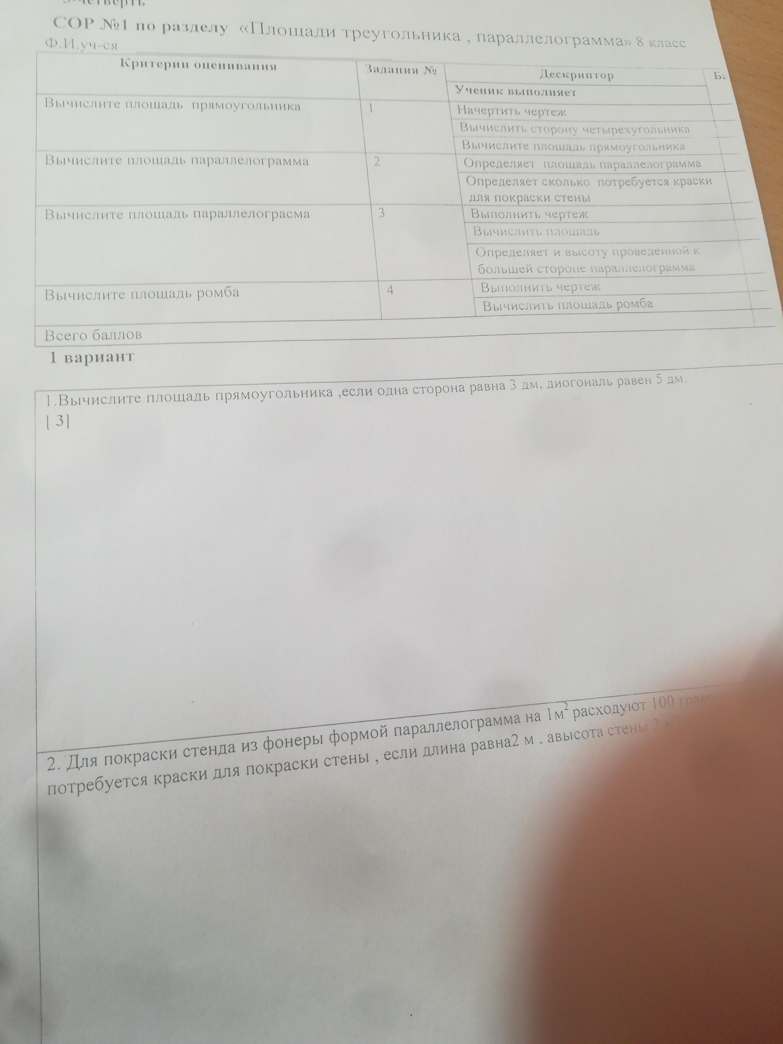 Вычислите площадь прямоугольника, если одна сторона равна 3 дм, диагональ равен 5 дм