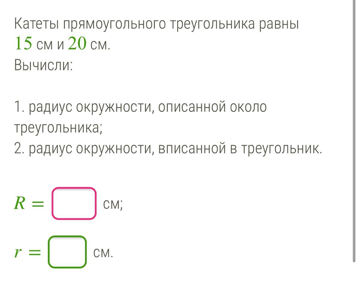 Радиус вписанной окружности в прямоугольный треугольник находится по формуле r = (a + b - c)/2, где а, b - катеты, с - гипотенуза