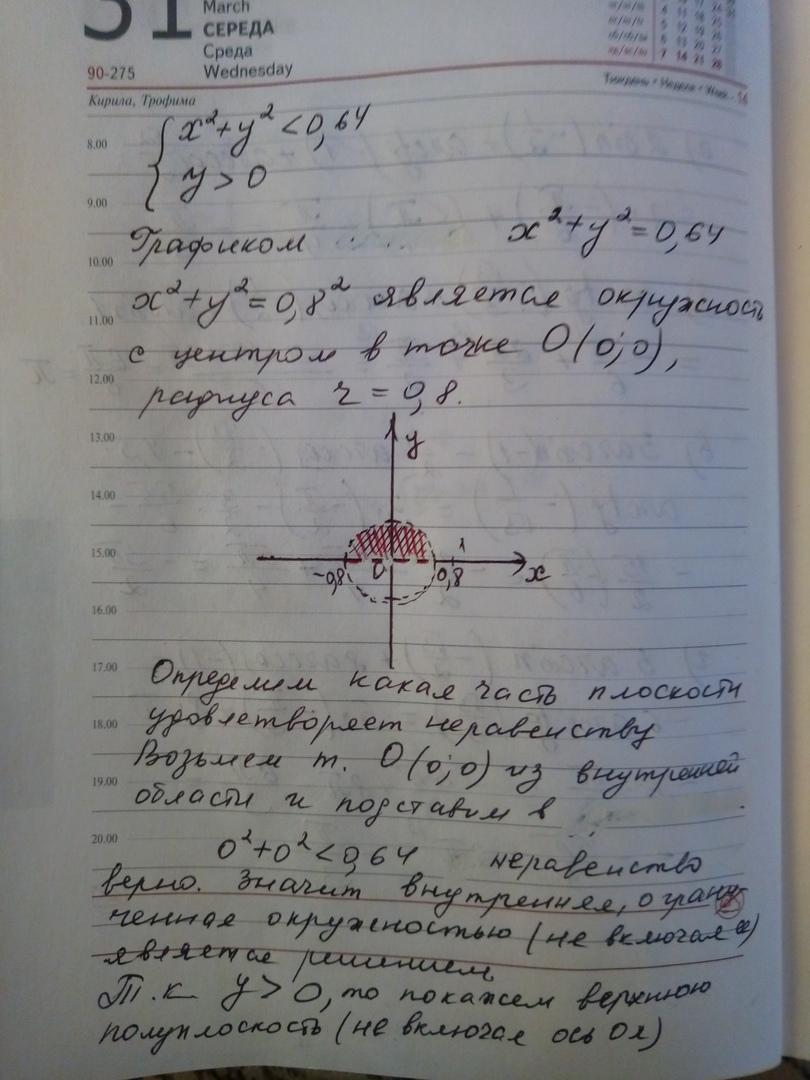 на координатной плоскости покажите штриховкой множество точек ,заданных системой неравенств { х в квадрате + у 2 меньше 0,64,