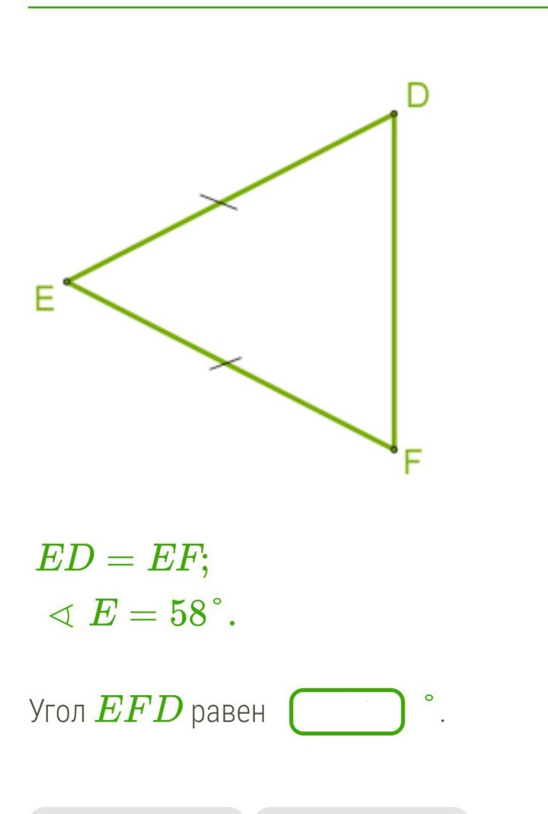 Так я как помечено на рисунке что это равнобедренный треугольник то 180-58 будет 122 и потом что бы узнать два угла надо 122:2 то будет по 61 градус то ответ 61 градус