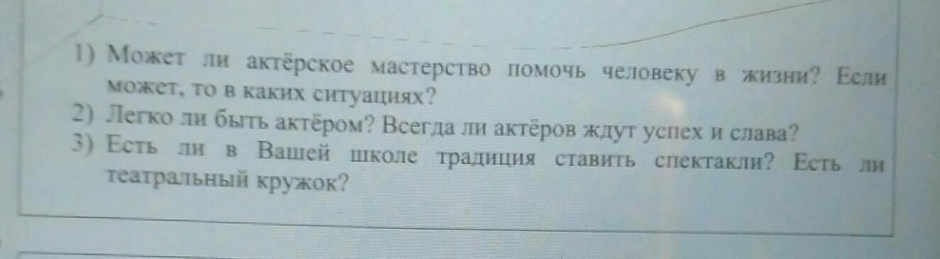 Да,прежде всего актерское мастерство - это развитие памяти, способность сопереживать, умение держать себя и свои мысли под контролем.Актером быть не так легко, как кажется.Нужно уметь мастерски передать чувства, эмоции в той или иной ситуации,чтобы зритель поверил, прочувствовал героя.Актеров не всегда ждет слава.Но если вы умеете чувствовать проблемы других людей и не только, готовы прилагать усилия, чтобы добиться успеха, у вас всё получится.В нашей школе на определенные праздники мы ставим различный сценки, спектакли и выступления, чтобы немного отвлечься от учебы, развлечься или узнать что-то новое.Театрального кружка к сожалению нет, но так хотелось бы!Ведь это отличный шанс показать себя и свои способности людям.