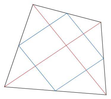 Четырехугольник с вершинами в серединах сторон произвольного четырехугольника называют параллелограммом Вариньона.