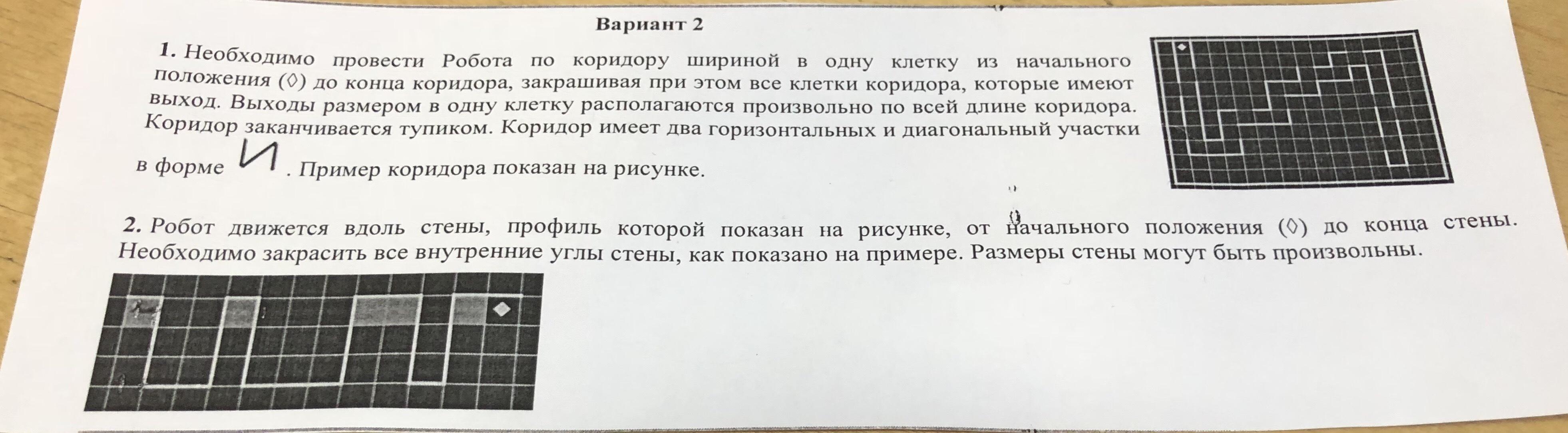 1. Необходимо провести Робота по коридору шириной в одну клетку из начального
