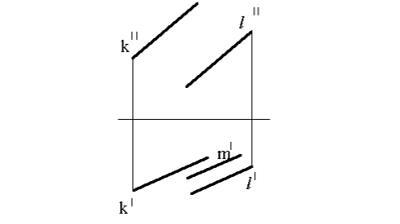 Построить фронтальную проекцию прямой m, лежащей в плоскости, заданной параллельными прямыми.