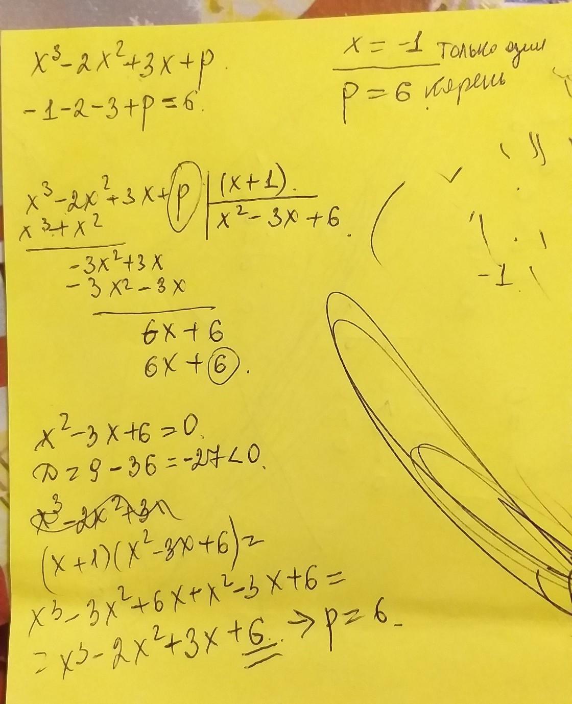 Один корень многочлена P (x) = x ^ 3-2x ^ 2 + 3x + p равен (-1). Найти этот многочлен и все его корни