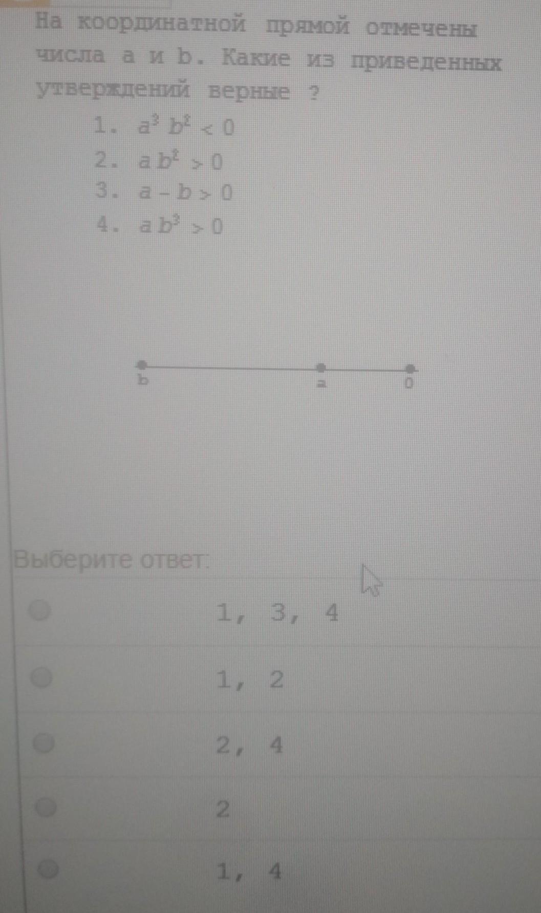 на координатной прямой отмечены числа a и b. Какие из приведенных утверждений верны.