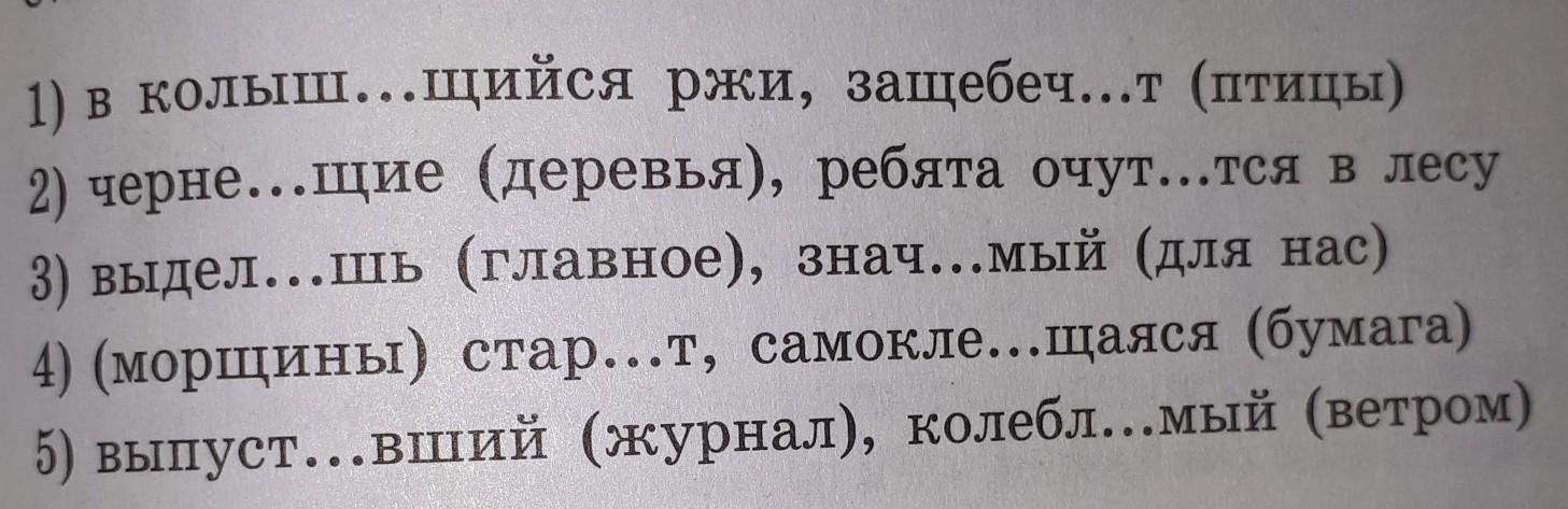 5) ответ...л (на вопрос), омыва...мая (морями)