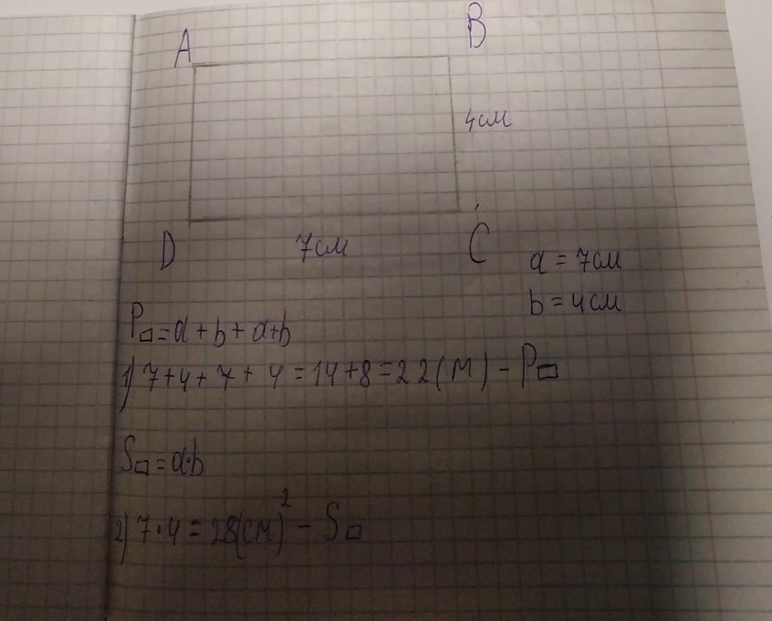 Ответ:s=28cm^2 p=22cm