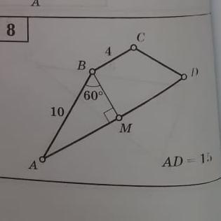 По т Пифагора AM^2=AB^2-BM^2=100-25=75=>AM=5корень из3