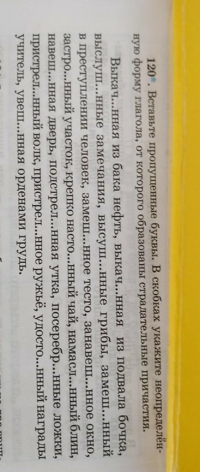 Выкачанная(выкачать) из бака нефть, выкаченная(выкатить) из подвала бочка, выслушанные(выслушать) замечания, высушенные(высушить) грибы, замешанный(замешать) в преступлении человек, замешенное(замесить) тесто, занавешенное(занавесить) окно, навешанная(навесить) дверь, подстреленная(подстрелить) утка, посеребренные(посеребрить) ложки, пристреленный(пристрелить) волк, пристрелянное(пристрелять) ружьё, удостоенный(удостоить) награды учитель, увешанная(увешать) орденами грудь